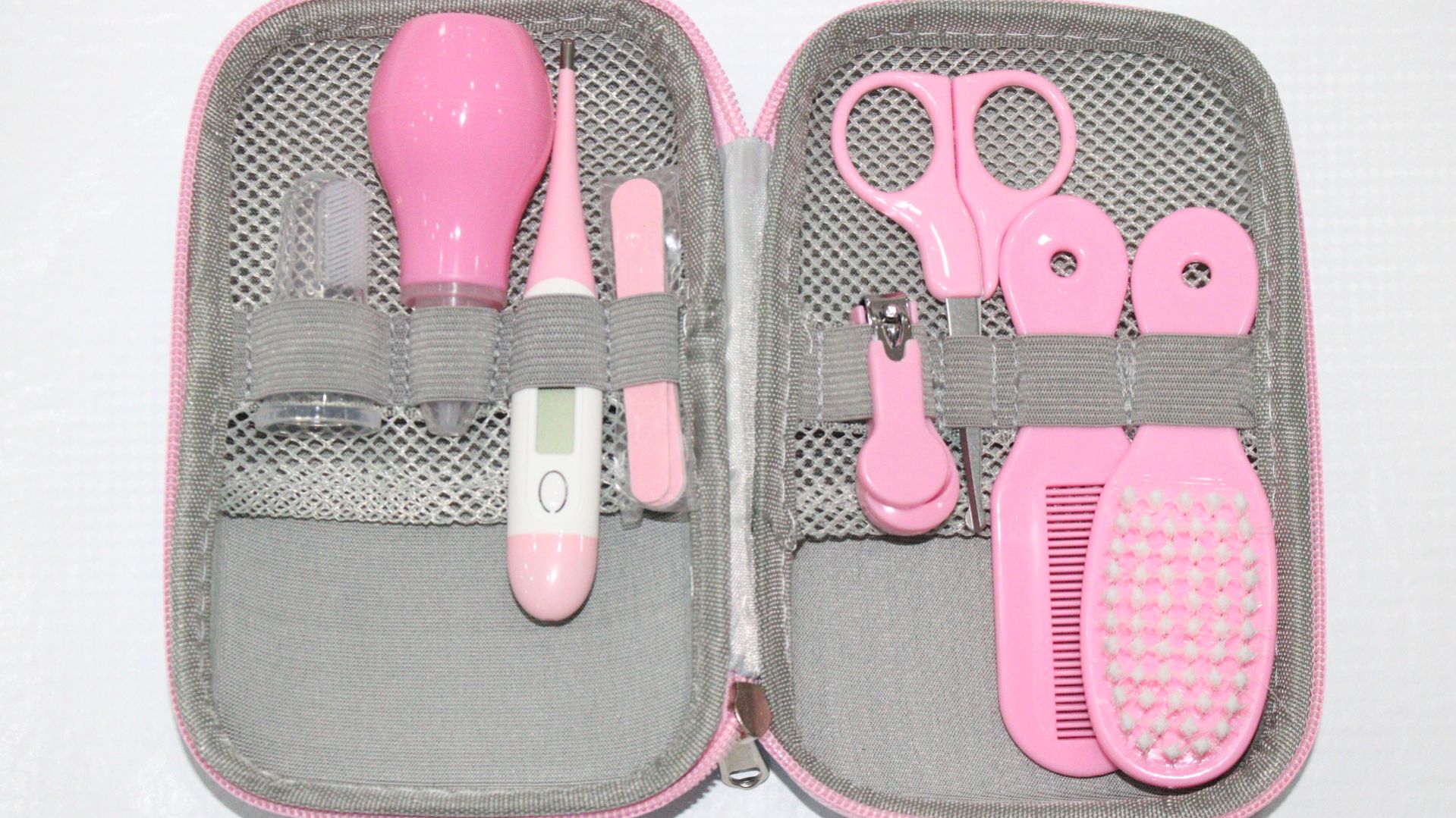 Baby grooming kit, infant safety care set with hair brush, comb, nail clipper, nasal aspirator, baby essentials kit for newborn girls and boys.